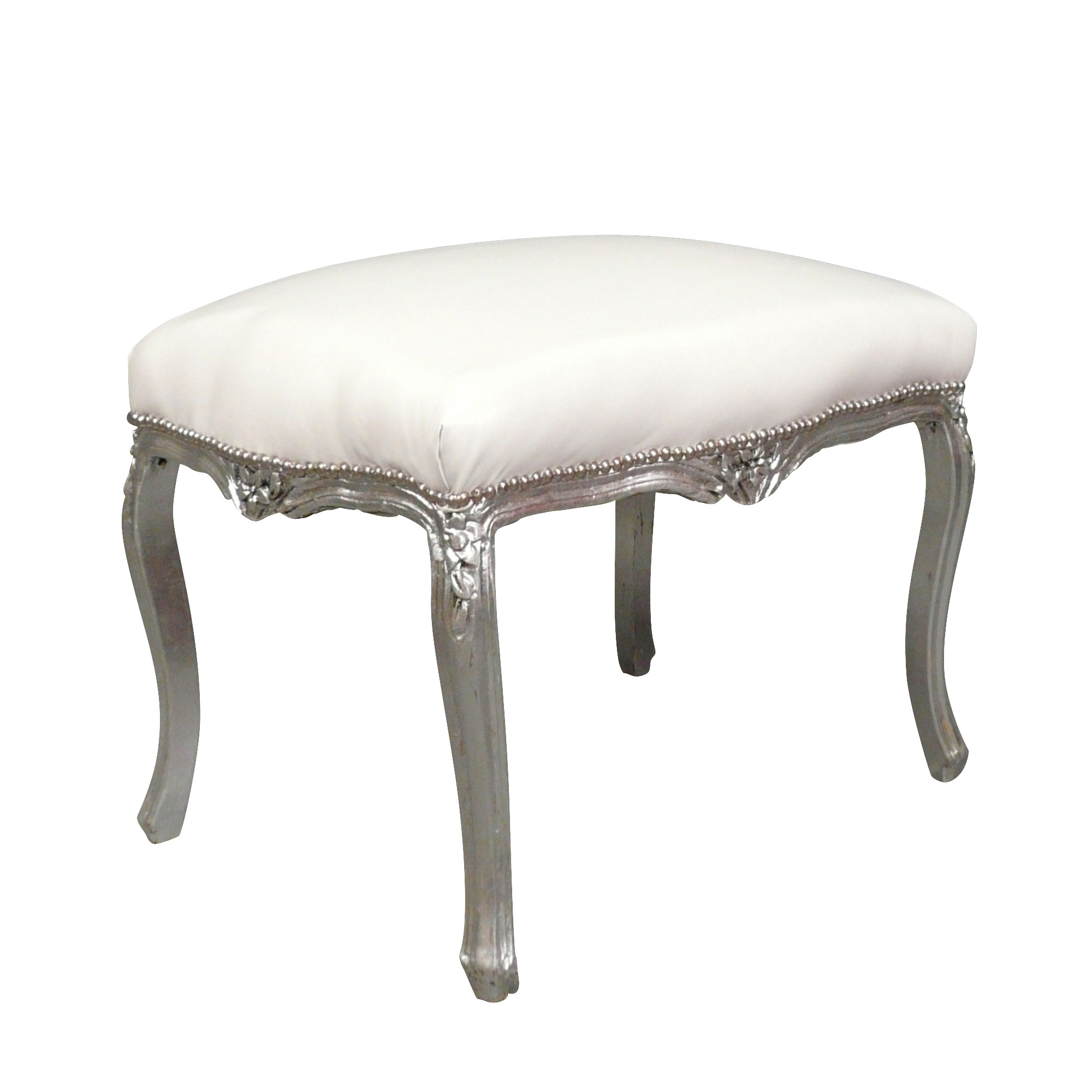 Banquette baroque en bois de hêtre massif argenté, tapissée avec un tissu pvc facilement lavable, il est maintenu par des clous de tapissier.