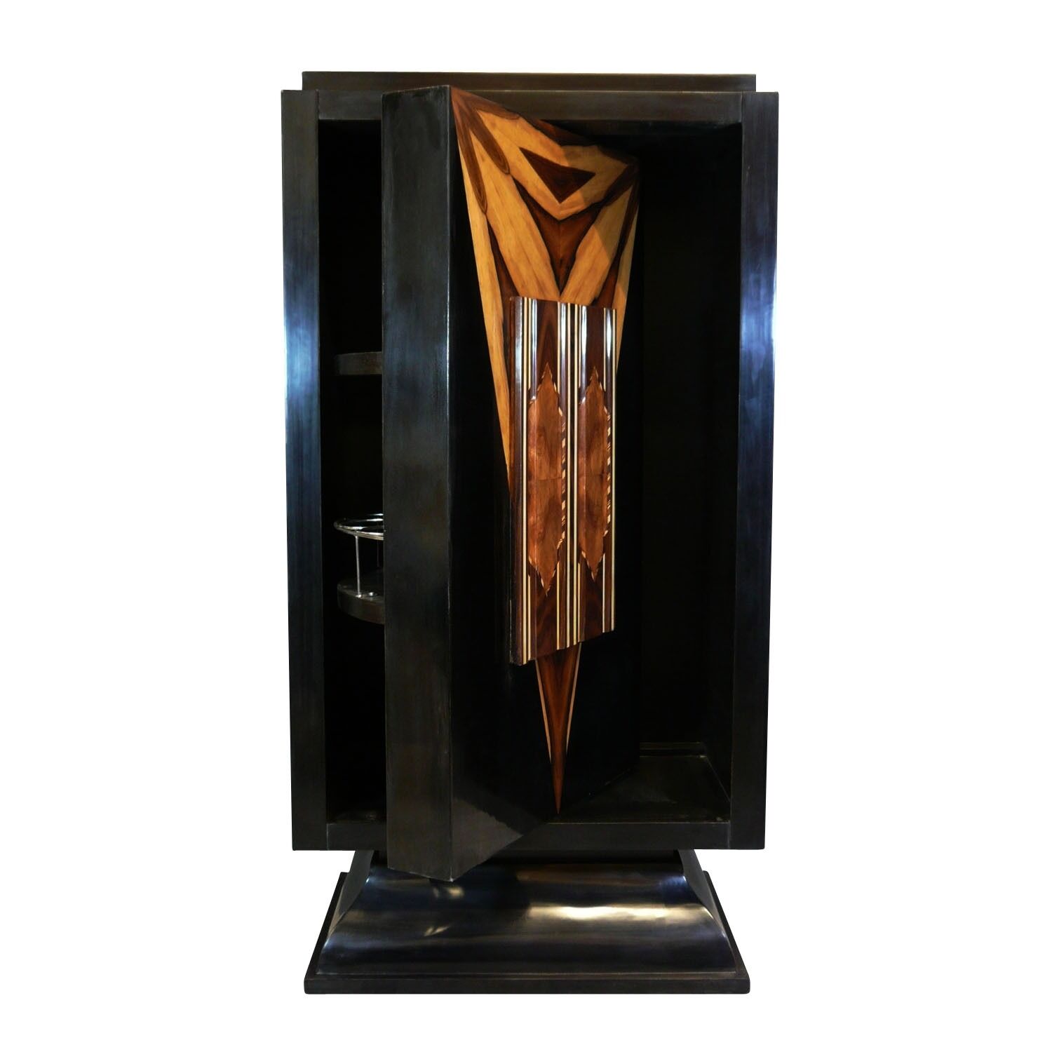 Un meuble bar Art Déco doté d’une Porte Pivotante sur un Axe à 360°