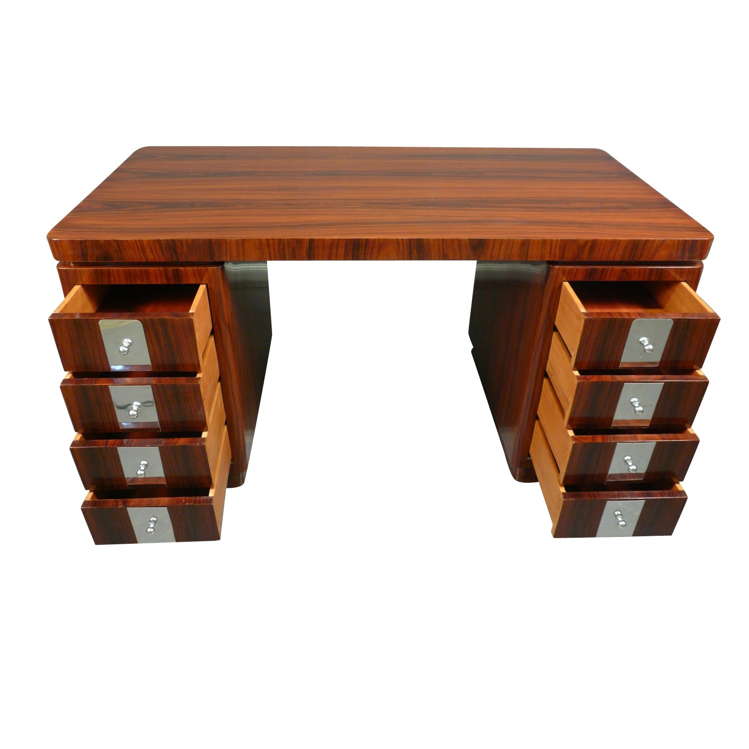 Le bureau art déco Paris est une réplique d’un meuble des années vingt, sa marqueterie est en palissandre sur un bâti en bois de hêtre.