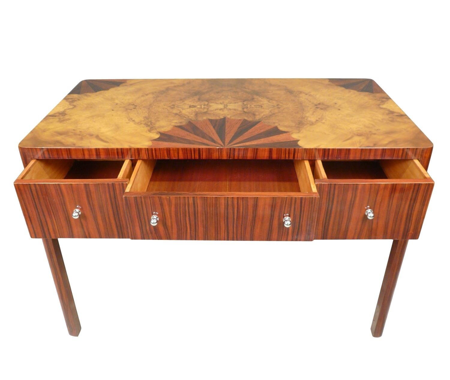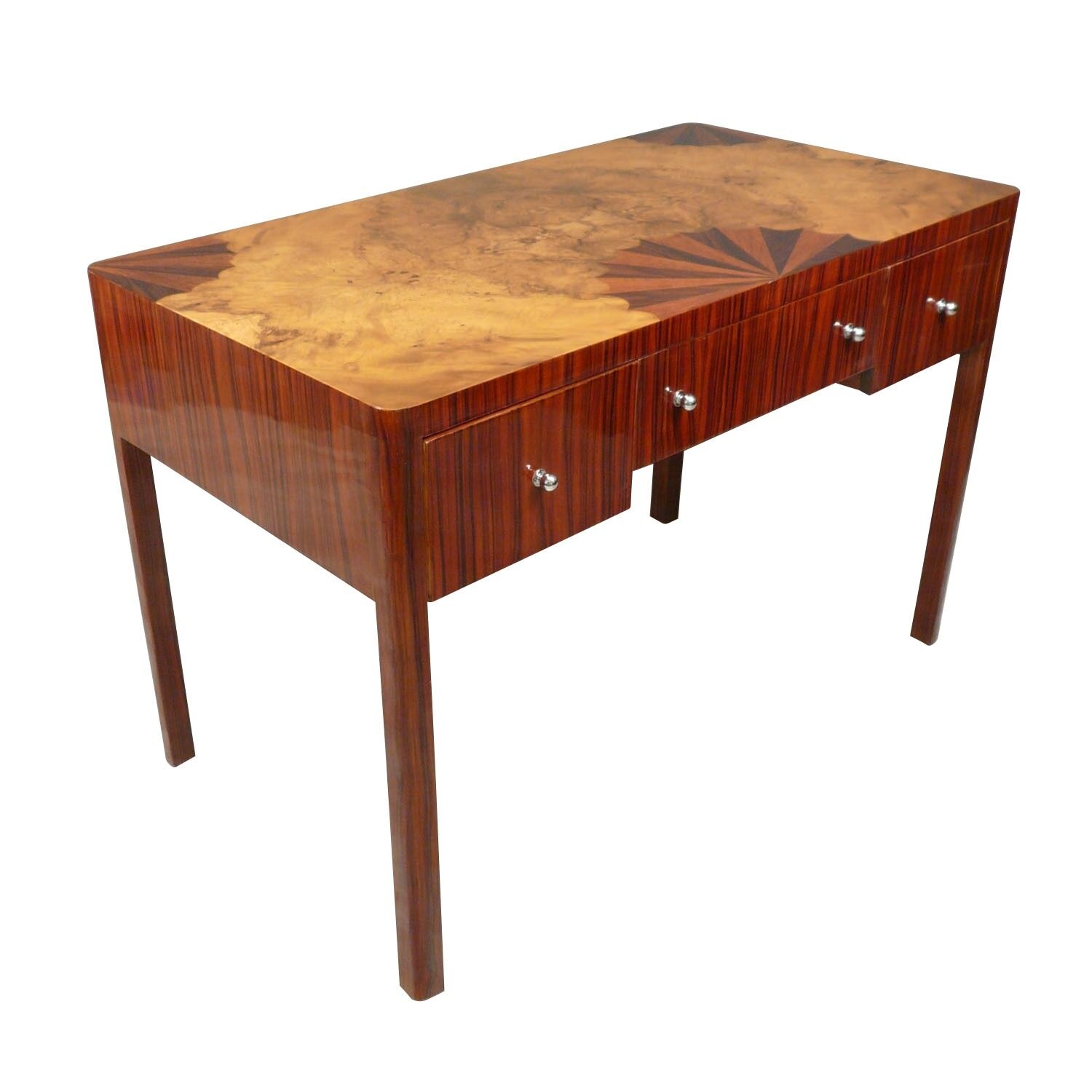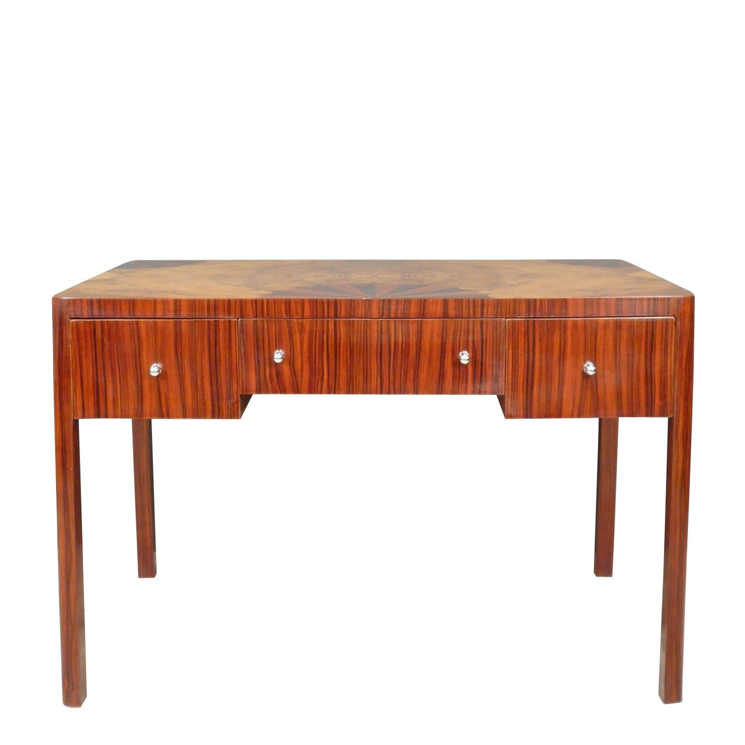 Bureau art déco en marqueterie de palissandre et loupe d’orme, sur une structure en bois de hêtre.