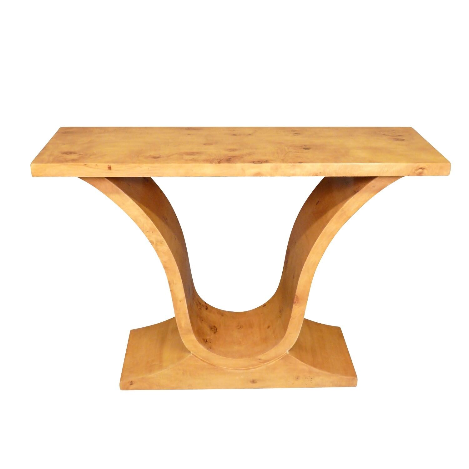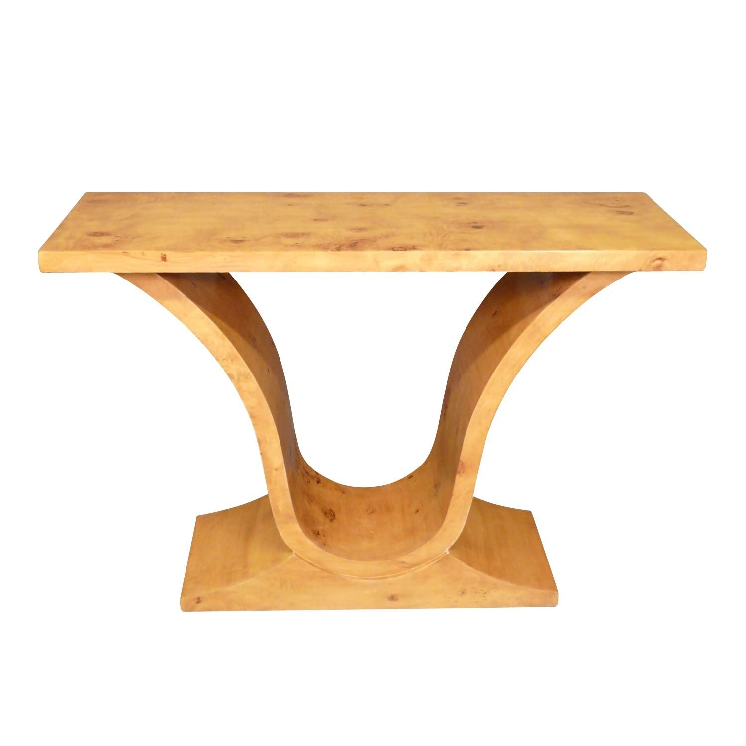 Le bois clair de cette console éclaircit vos pièces, créant une atmosphère chaleureuse et accueillante. De plus, le bois clair est très tendance, ce qui rend cette console à la fois moderne et intemporelle. La console est rehaussée par une marqueterie de loupe d’orme. Cette marqueterie ajoute une touche d’élégance et de sophistication à la console, la rendant encore plus attrayante.