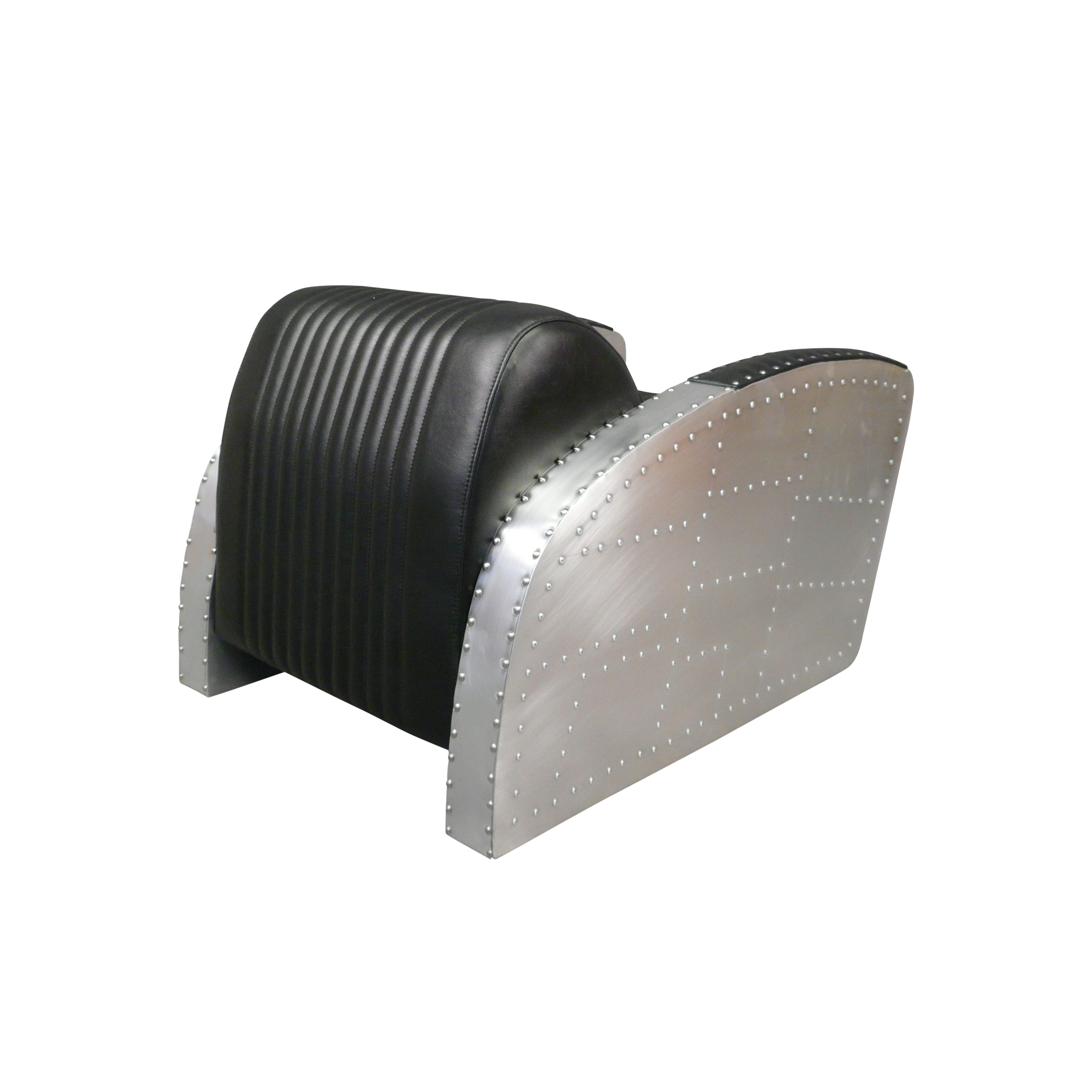 Sa forme reprend le style des fauteuils club aviateur des années cinquante, il sera la note de goût de votre décoration d’intérieur. Son design plus épuré qu’un fauteuil club classique lui permet de s’adapter à des intérieurs étroits, tout en maintenant un grand niveau de confort et de robustesse.Il s’inspire de l’aéronautique avec des plaques de métal en alu riveté, faisant penser à la carlingue des avions en aluminium de la seconde guerre mondiale.