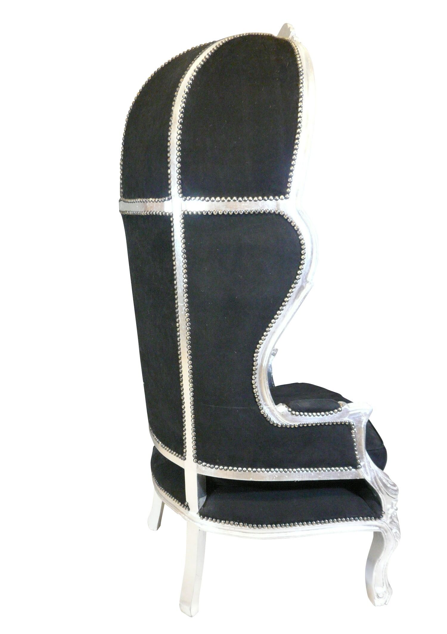 Reprenant les codes du style des mobiliers des anciennes royautés, nobles et aristocrates du XVIIème siècle, le fauteuil baroque prend le rôle de siège. Grâce à son opulence et ses détails chic, c’est le meuble décoratif le plus original et le plus intemporel du monde. Avec son apparence en forme de berceau, ce siège fournira à votre pièce une ambiance décontractée et luxueuse ainsi qu’un confort convivial. Le fauteuil baroque carrosse noir intègre tous les détails inspirés du modèle original, comme la structure en bois massif de hêtre argenté, le tapissage en velours noir fixé avec des clous de tapissier.