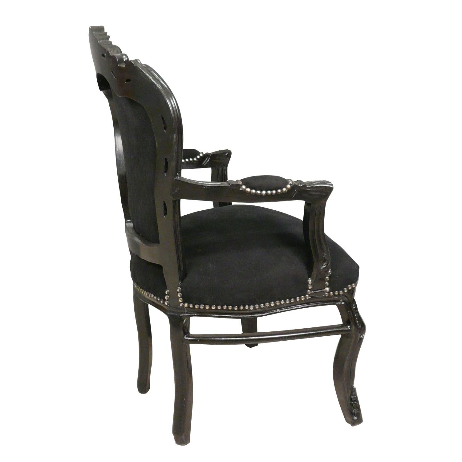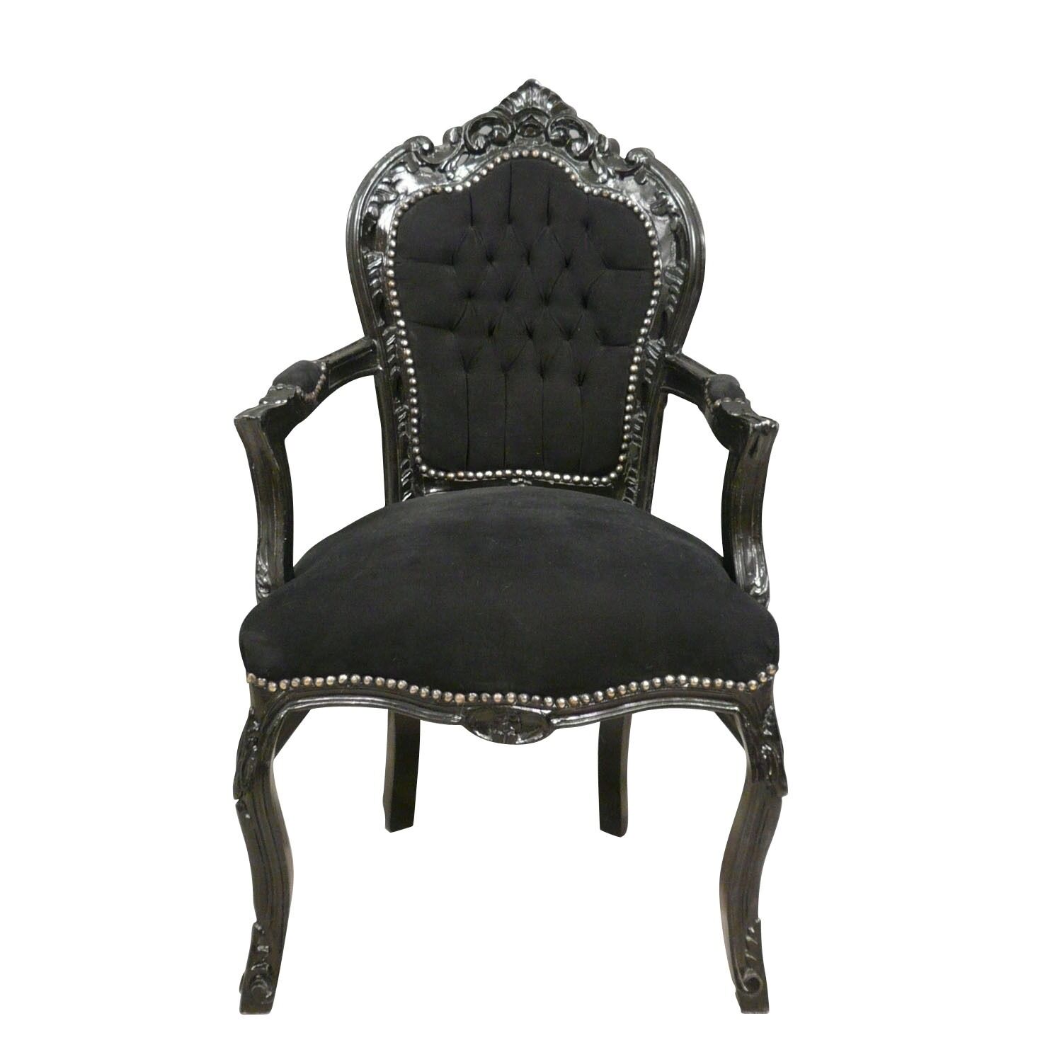Ce fauteuil baroque noir est garni de mousses de haute qualité, garantissant un confort optimal à son occupant. Un tissu en velours doux maintenu par des clous de tapissier couvre le mobilier pour créer plus d’effets.