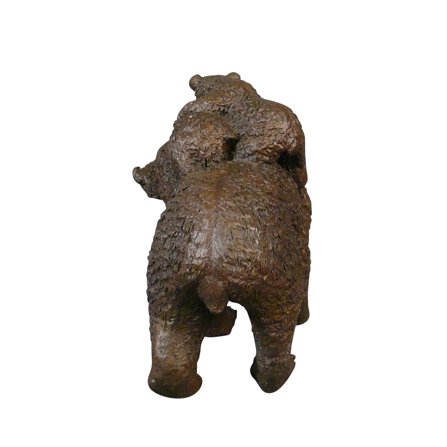 Statue en bronze l’ours et ses oursons grimpant sur son dos.