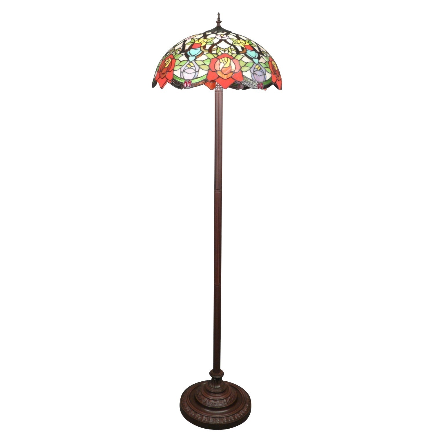 Ce lampadaire Tiffany avec des roses est une pièce majestueuse qui allie savoir-faire artisanal et esthétique florale raffinée. Son large abat-jour en vitrail de verre véritable est constitué de plusieurs centaines de morceaux multicolores, soigneusement découpés, ajustés et assemblés à la main selon la célèbre technique de Louis Comfort Tiffany.