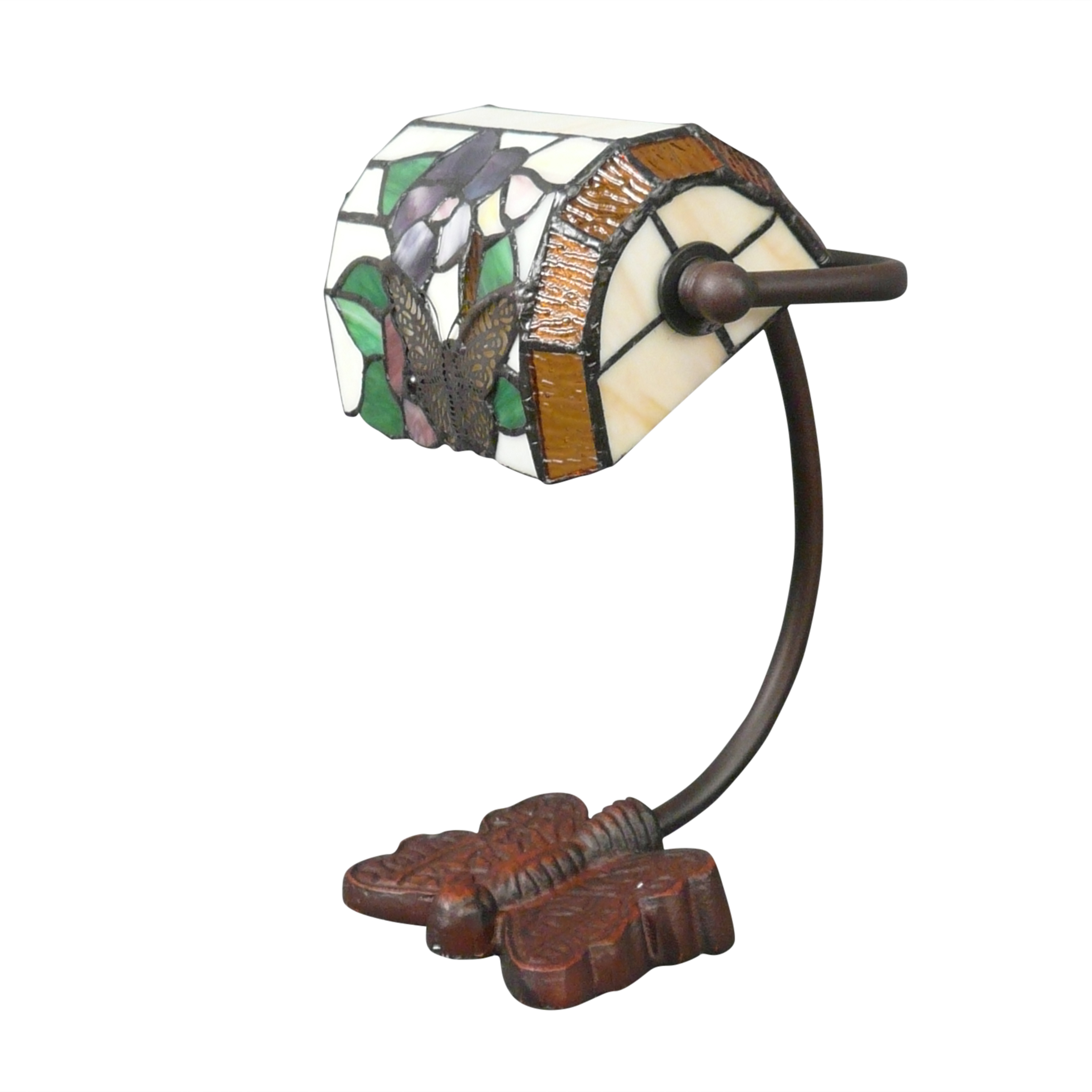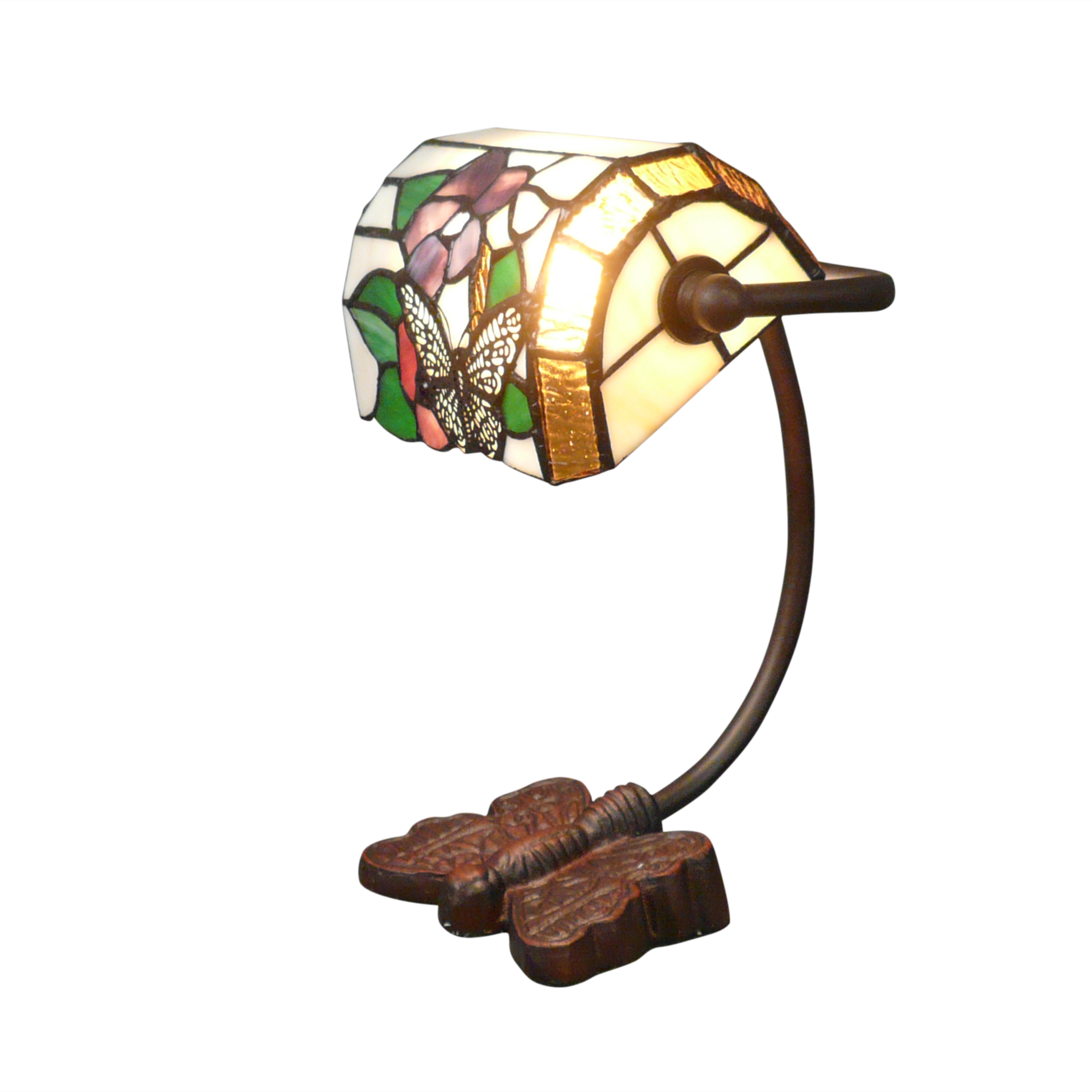 Lampe Tiffany de bureau au style Art Nouveau, décorée d’un délicat motif de papillon en vitrail coloré. Parfaite pour illuminer un espace de travail ou créer une ambiance douce et inspirante, cette lampe combine fonctionnalité et esthétique raffinée.