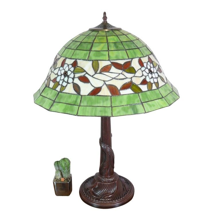 Alliance de contraste et d’élégance, cette lampe Tiffany se distingue par son vitrail coloré aux tons verts, blancs et rouges. Les verres, soigneusement agencés, offrent une composition équilibrée où la lumière se diffuse en douceur, tout en soulignant la richesse des couleurs. Ce modèle dégage une atmosphère chaleureuse et pleine de caractère, idéale pour un salon ou un bureau raffiné.