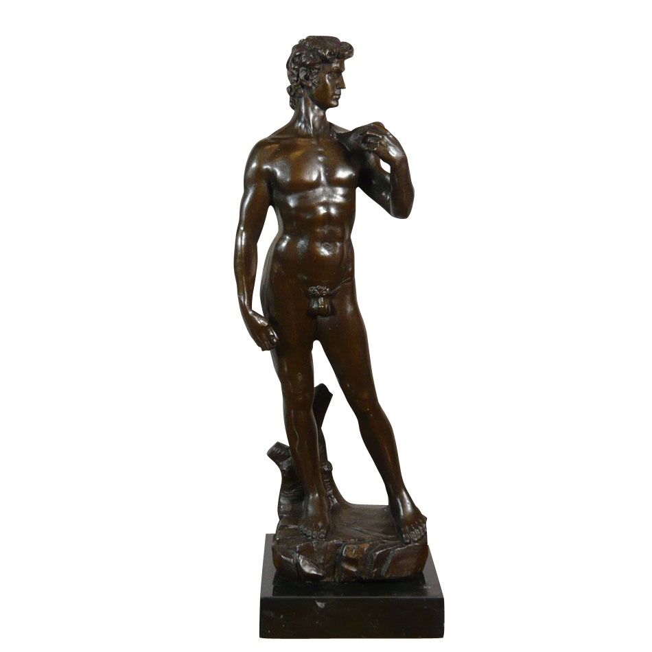 Sculpture en bronze le David d’après Michel-Ange socle en marbre noir véritable. Hauteur : 38,5 cm