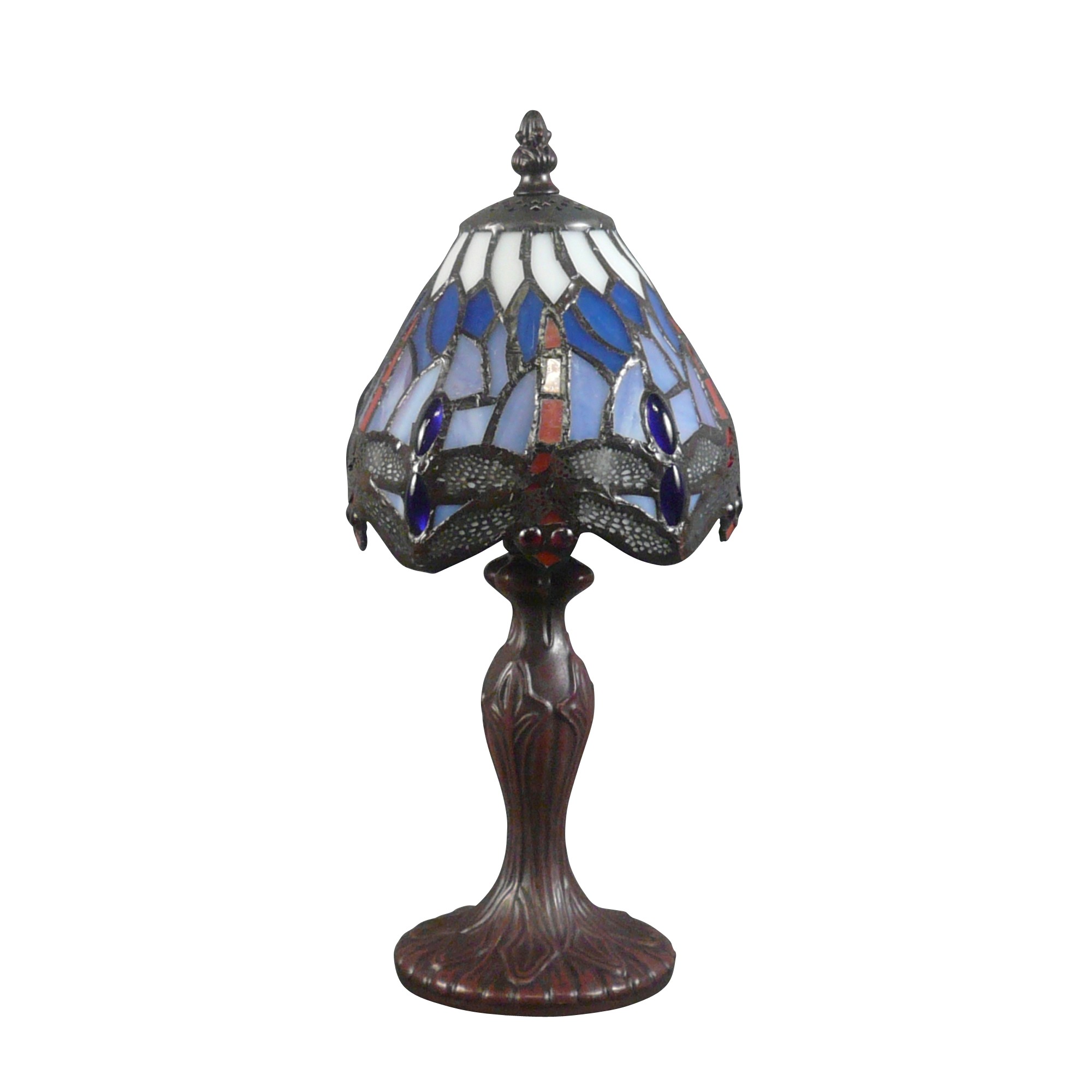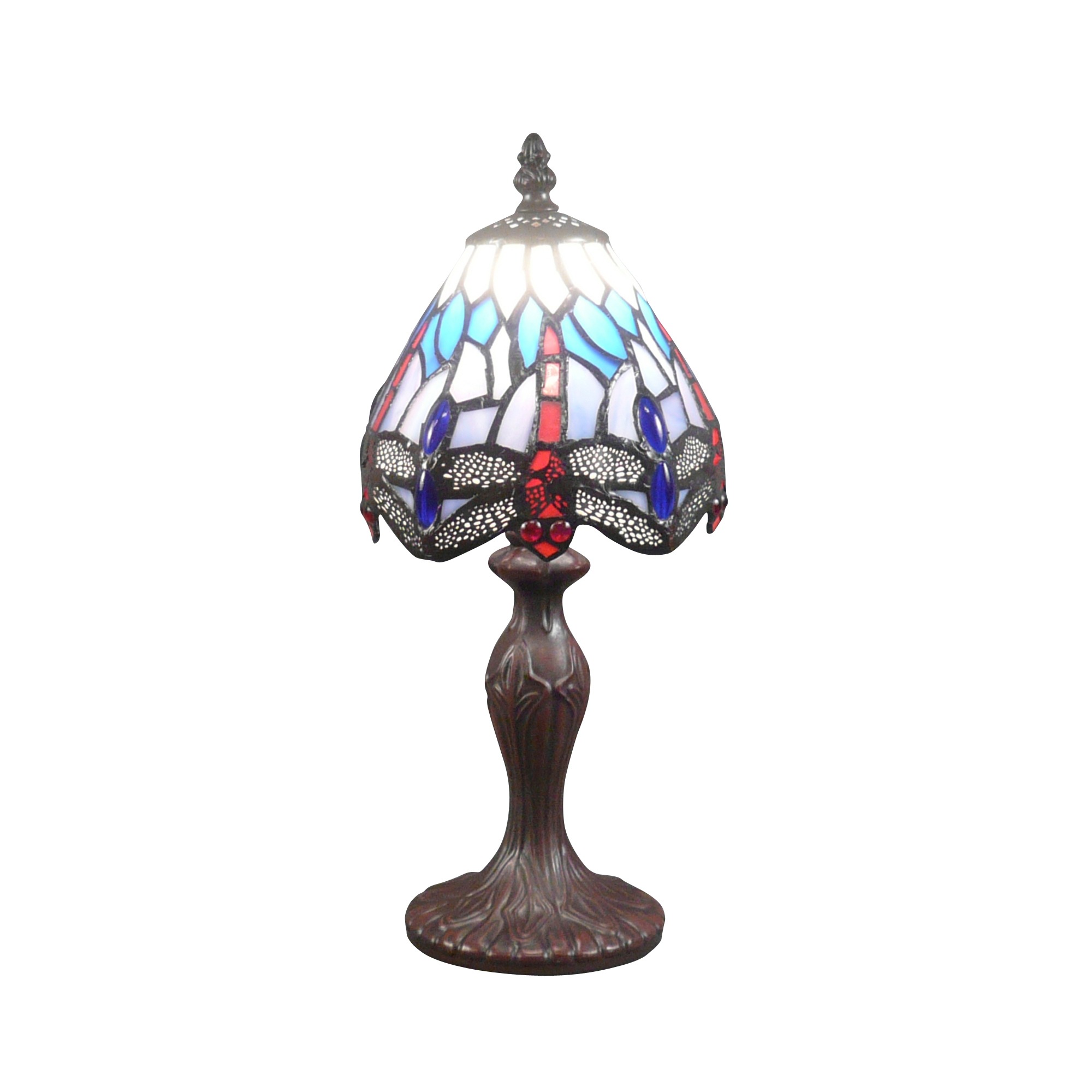 Inspirée du célèbre artiste Louis Comfort Tiffany, cette petite lampe façon Tiffany avec libellule est un véritable hommage à l’art nouveau. Elle présente un magnifique vitrail en verre bleu, blanc opalescent, rouge et des cabochons.