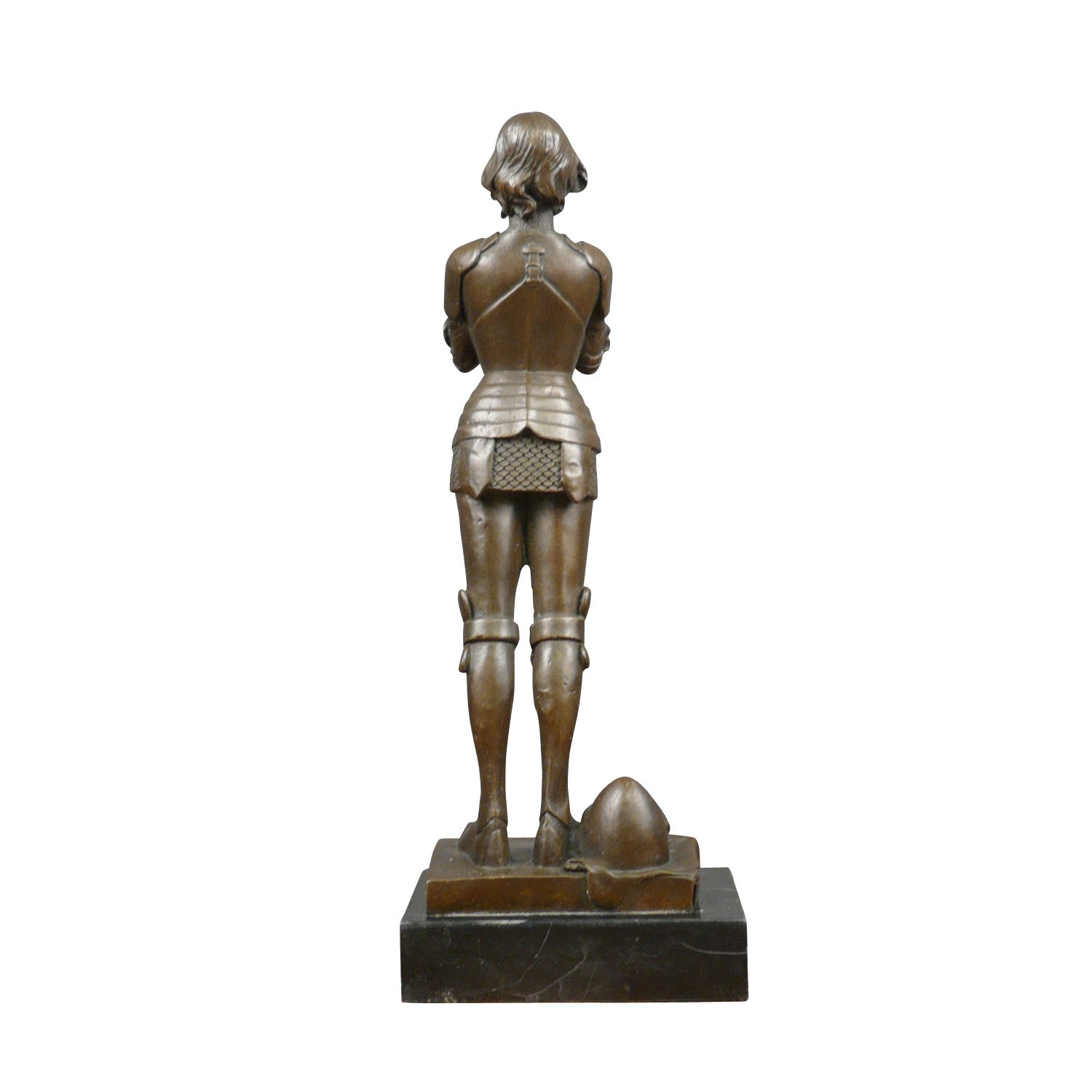 Statue en bronze de Jeanne d’arc priant sur un socle de marbre noir. Statuette en bronze et socle en marbre. Hauteur: 33 cm.