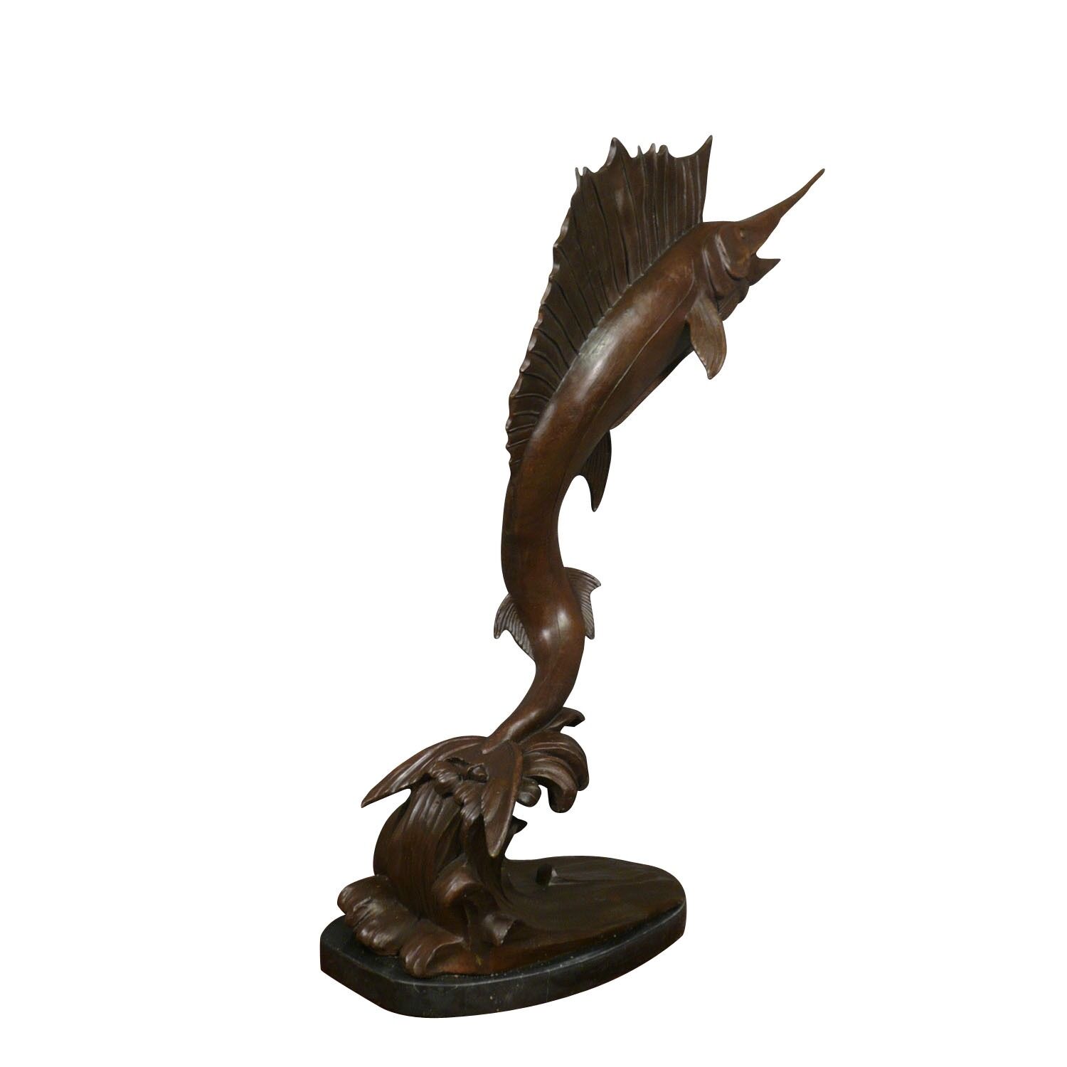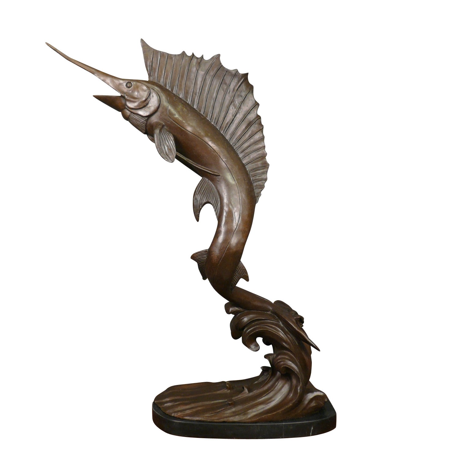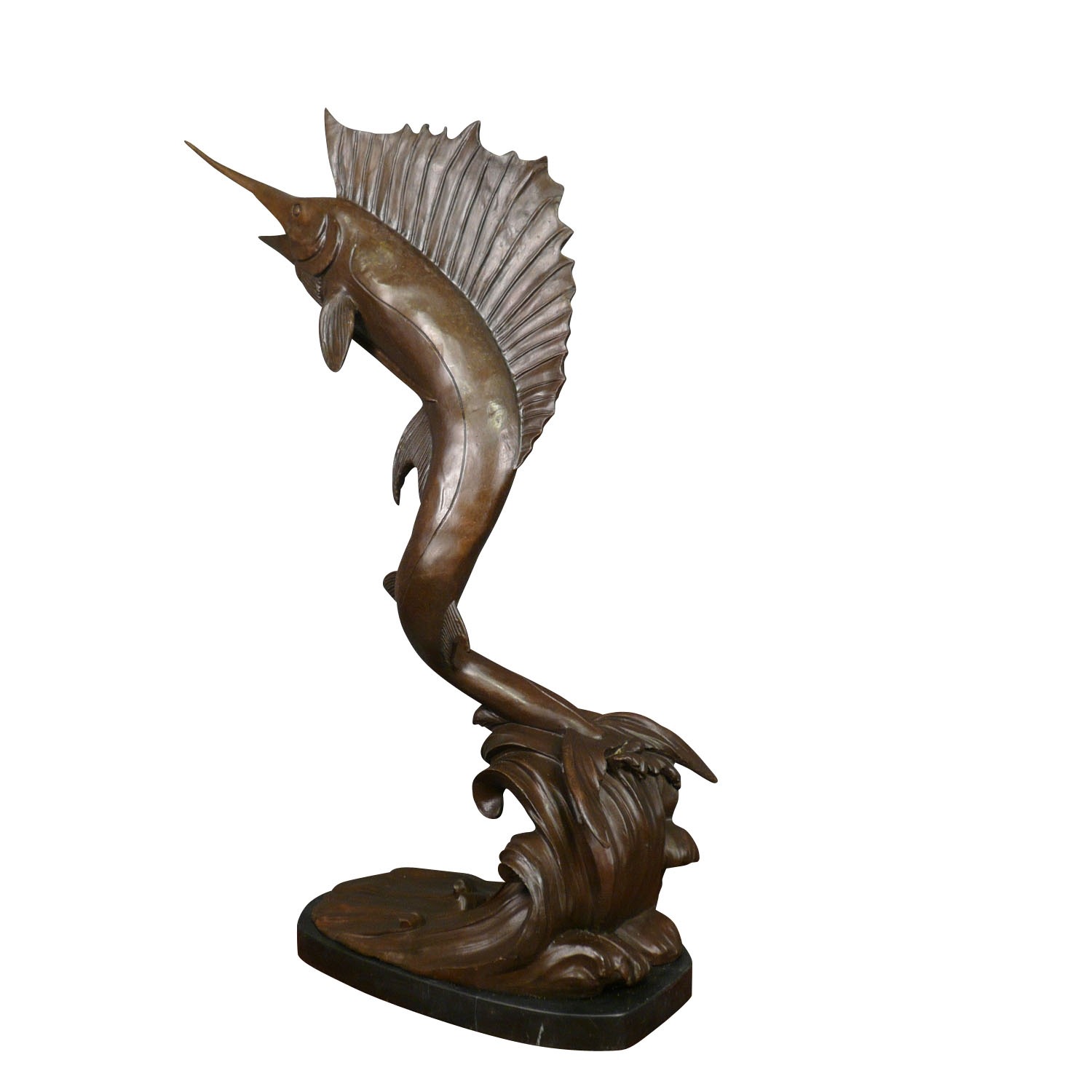 Sculpture en bronze, « Le saut de l’espadon », grand bronze d’une hauteur de 86 cm sur un socle en mabre noir.