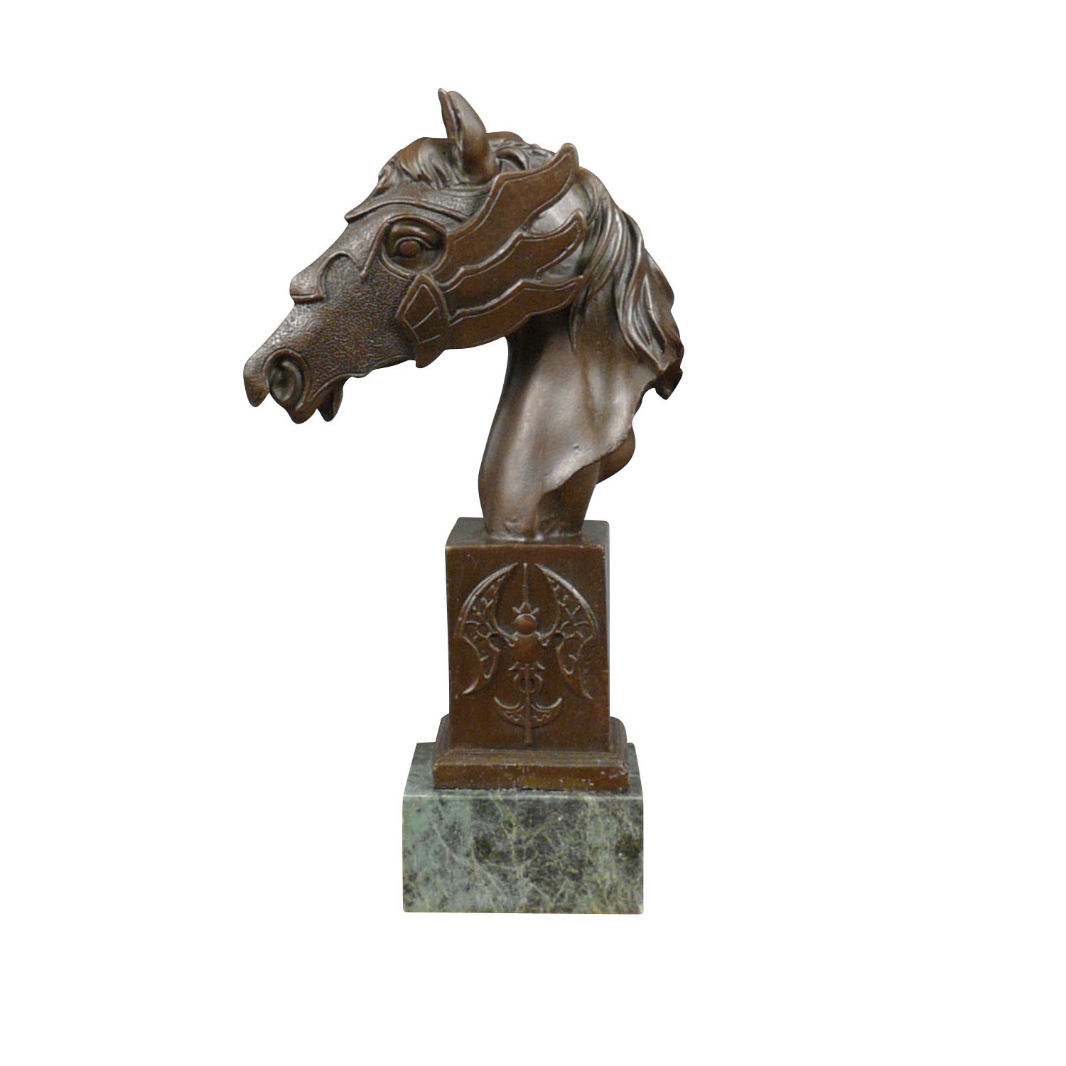 Statue en bronze du buste d’un cheval réalisée à la cire perdue sur un socle en marbre véritable pour une hauteur de 25 cm.